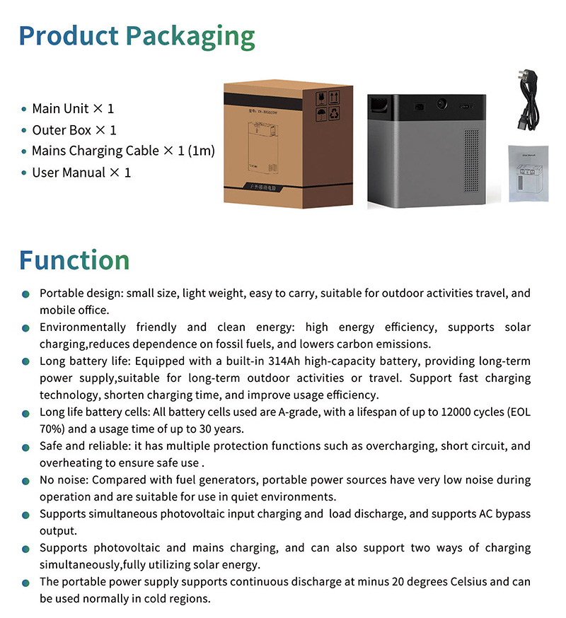 2009.6Wh 6.4V 314Ah 1000W Portable Power Station LiFePo4 Battery Pack